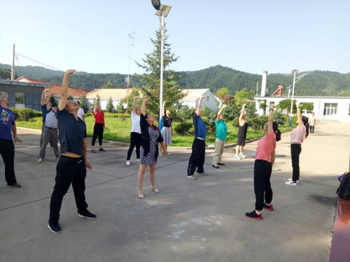 清晨,何书记、侯老师带领镇办公人员、扶贫队员们在镇政府办公楼前学习八段锦养生操,实践队员们帮忙认真纠正着动作。活动得到了大家的认可,都说受益匪浅,纷纷表示回去后会勤加练习并传授给村民们,让中医传统文化在农村也发扬光大。随后,实践队员们又开始了给村民测量血压,宣传卫生健康知识等,傍晚我们来到镇小学,召集镇里的小朋友一起做游戏,并且为他们表演了婀娜多姿的舞蹈与英姿飒爽的双截棍等节目。通过这些活动关爱山区儿童,鼓励他们好好学习,努力读书,向更高的学府迈进。